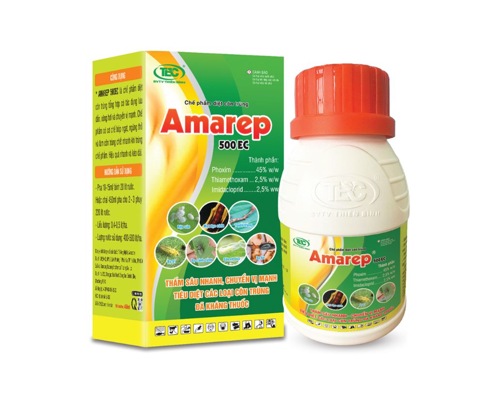 AMAREP 500EC là chế phẩm diệt côn trùng tổng hợp có tác dụng lưu dẫn, xông hơi và chuyển vị mạnh. Thuốc có cơ chế bóp ngạt, ngừng thở và làm côn trùng chết nhanh khi trúng thuốc. Hiệu quả nhanh và kéo dài.
