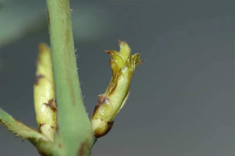 - Trên hoa, nụ hoa: chúng hút dinh dưỡng ở nụ hoa, hoa nở rất nhỏ nhạt màu và không bền, cánh hoa bị cháy đen. Cánh hoa dị dạng, nhanh tàn và thối.